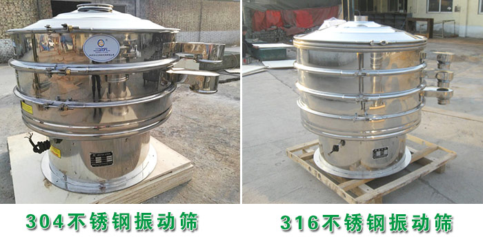 芝麻不銹鋼振動篩材質分為201、304、316、316L等不同材質的不銹鋼,其中201材質的不銹鋼材質相比其他的不銹鋼材質相對較差,只具有一點防銹功能,所以價格比較低,相比于304不銹鋼便宜500元左右,304材質的不銹鋼是振動篩里常用的一種材質,適合大部分篩分物料接觸面要求較高的物料。316與316L材質的不銹鋼比304不銹鋼更加更耐磨耐強酸強堿,價格上比304不銹鋼貴800元左右。