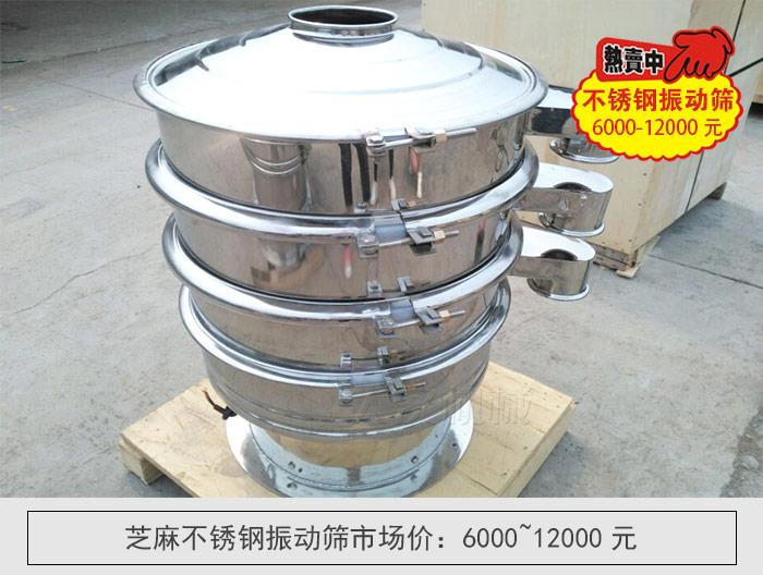通常篩分芝麻時因為對篩分所要求的材質比較高,所以市場上的價格差價很大,大漢機械所生產制造的芝麻不銹鋼振動篩市場價:6000~12000元,造成這個價格的差異是由一下幾個因素: